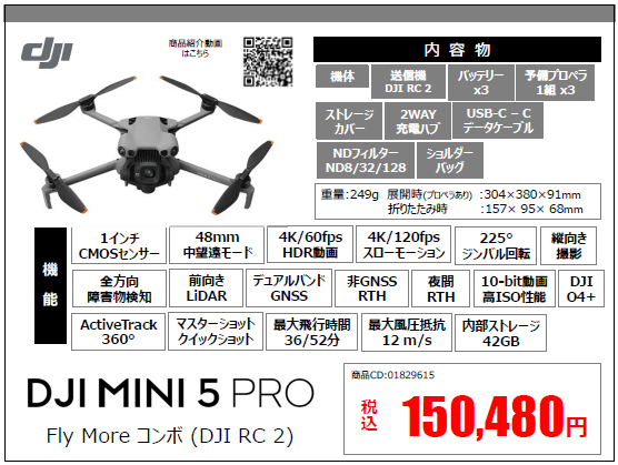DJI Mini 5 Pro Fly More コンボ (DJI RC 2付属)
