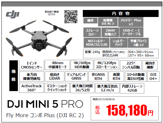DJI Mini 5 Pro Fly More コンボ Plus (DJI RC 2付属)