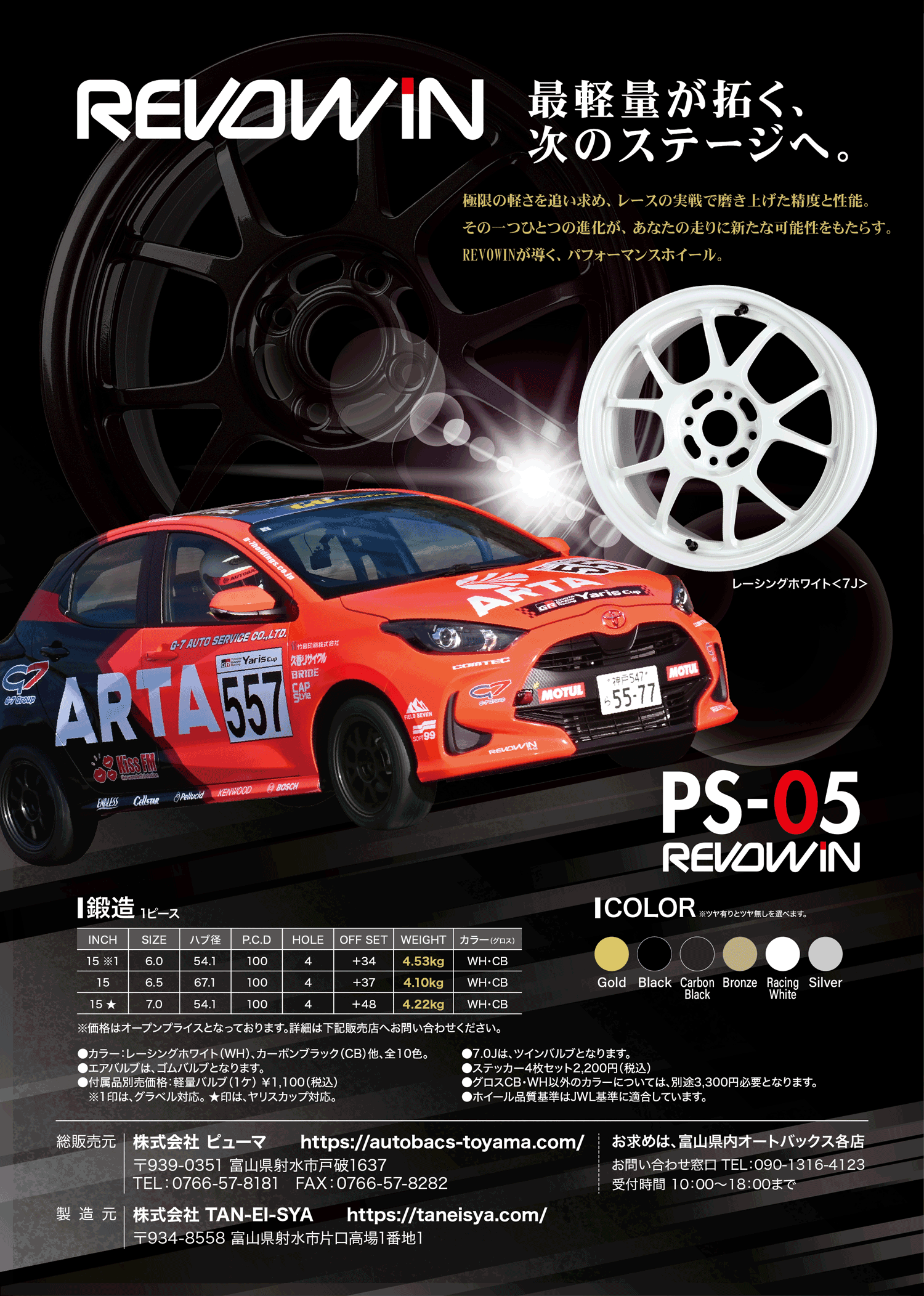 REVOWINTOPREVOWIN ヤリスカップ 対応サイズ コンマ1秒を削り出す最軽量ホイール好評販売中!全12色のカラーがマシンを際立たせる主な競技での実績 ● ヤリスカップ ● 全日本ラリー選手権 ●TGR ラリーチャレンジ お問い合わせ